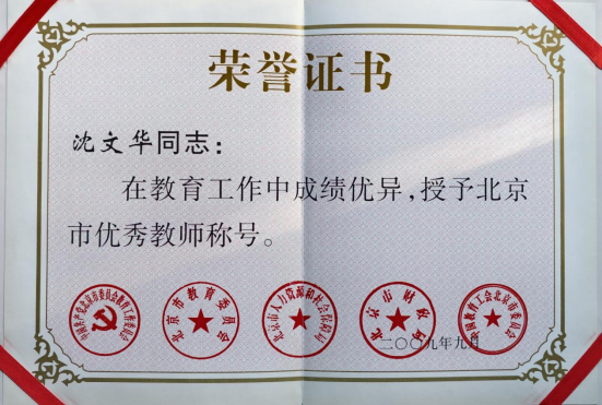 沈文华教授获评“北京市优秀教师”称号