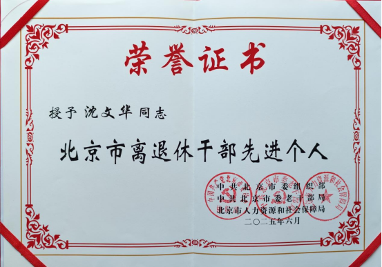 沈文华教授获评“北京市离退休干部先进个人”称号