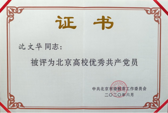 沈文华教授获评“北京高校优秀共产党员”称号