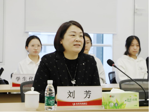 座谈会上,刘芳代表学院向北京农商银行天通苑支行对学院发展的关心和支持表示感谢,并介绍了学院学科建设、人才培养及服务乡村振兴成效。她指出,学院始终围绕国家重大战略与社会需求,着力推动人才培养与产业实际紧密衔接。希望未来双方进一步夯实合作基础、拓展合作领域,充分发挥各自优势,共同聚焦首都农业农村现代化与毕业生高质量就业,持续拓展就业渠道与岗位资源,在专业化人才培养、学生就业创业等方面开展更深层次、更具实效的合作,扎实推进校企协同育人、产教融合与科教融汇,携手为新时代首都发展贡献力量。