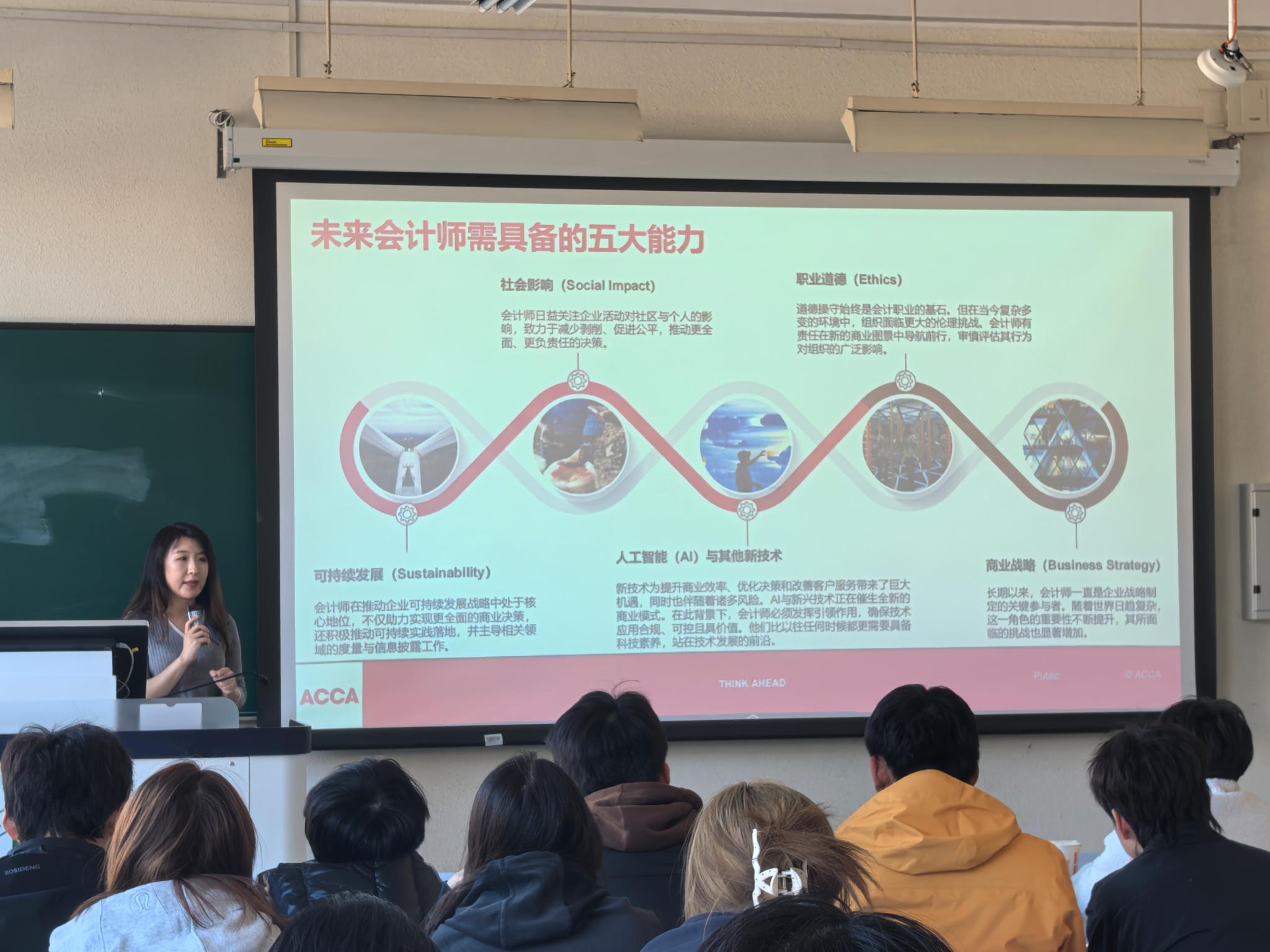 ,走进会计学(ACCA方向)实验班,开展专题宣讲,为同学们全面解读未来ACCA 专业资格、关键节点与支持时间表、学习支持资源,以及ACCA全国就业力X未来商业创想大赛相关信息,助力学子精准把握考纲变革,科学规划学习与职业发展路径。
